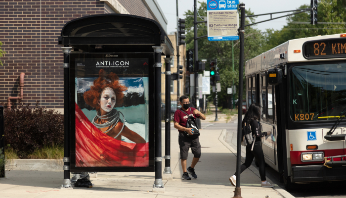 Nicholas Knight Courtesy of Public Art Fund NY. Nicholas Knight Courtesy of Public Art Fund NY. ANTI-ICON an exhibition on 300 JCDecaux bus shelters displayed across New York City Chicago and Boston August 25 to November 21 2021.
